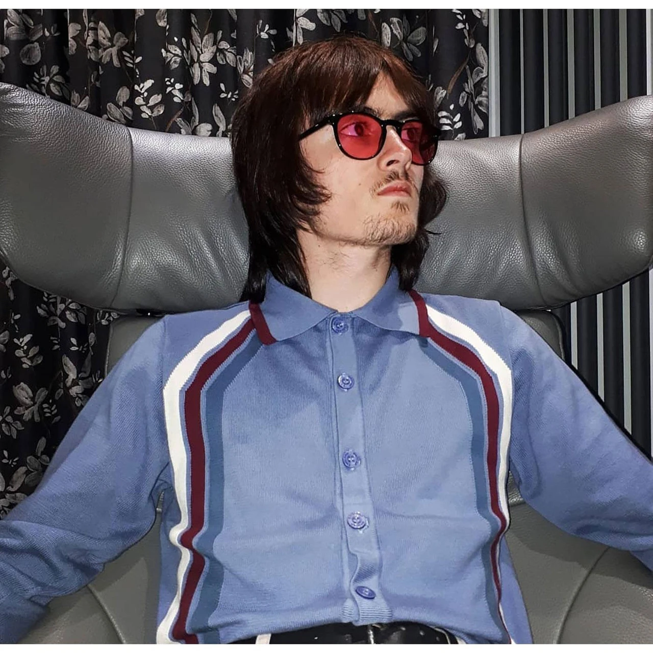 - Madcap England ‘Blast’ men’s mod stripe button through polo cardigan.