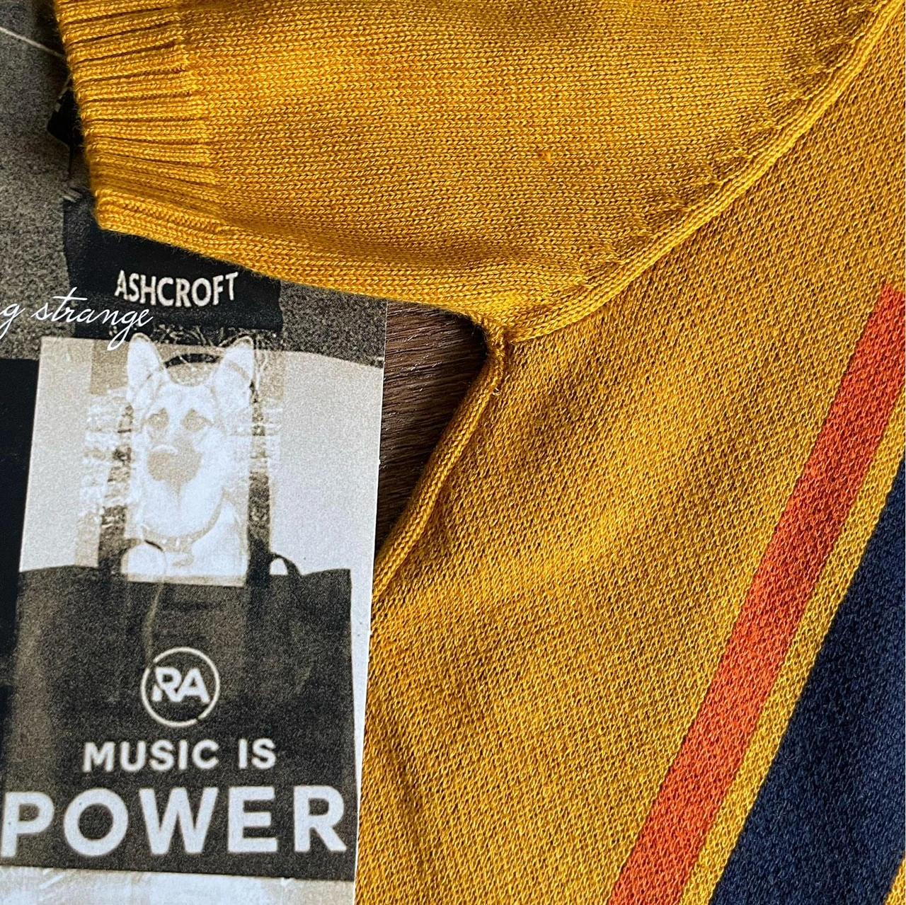 - Golden orange with navy, orange and off white