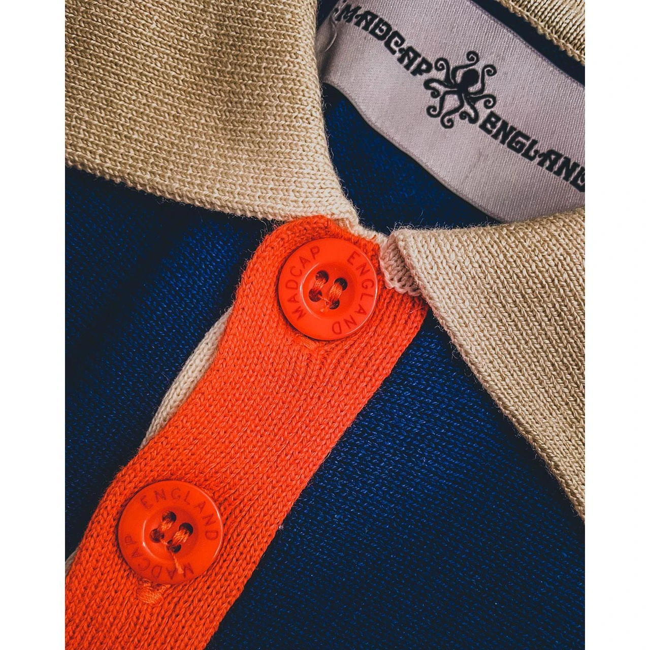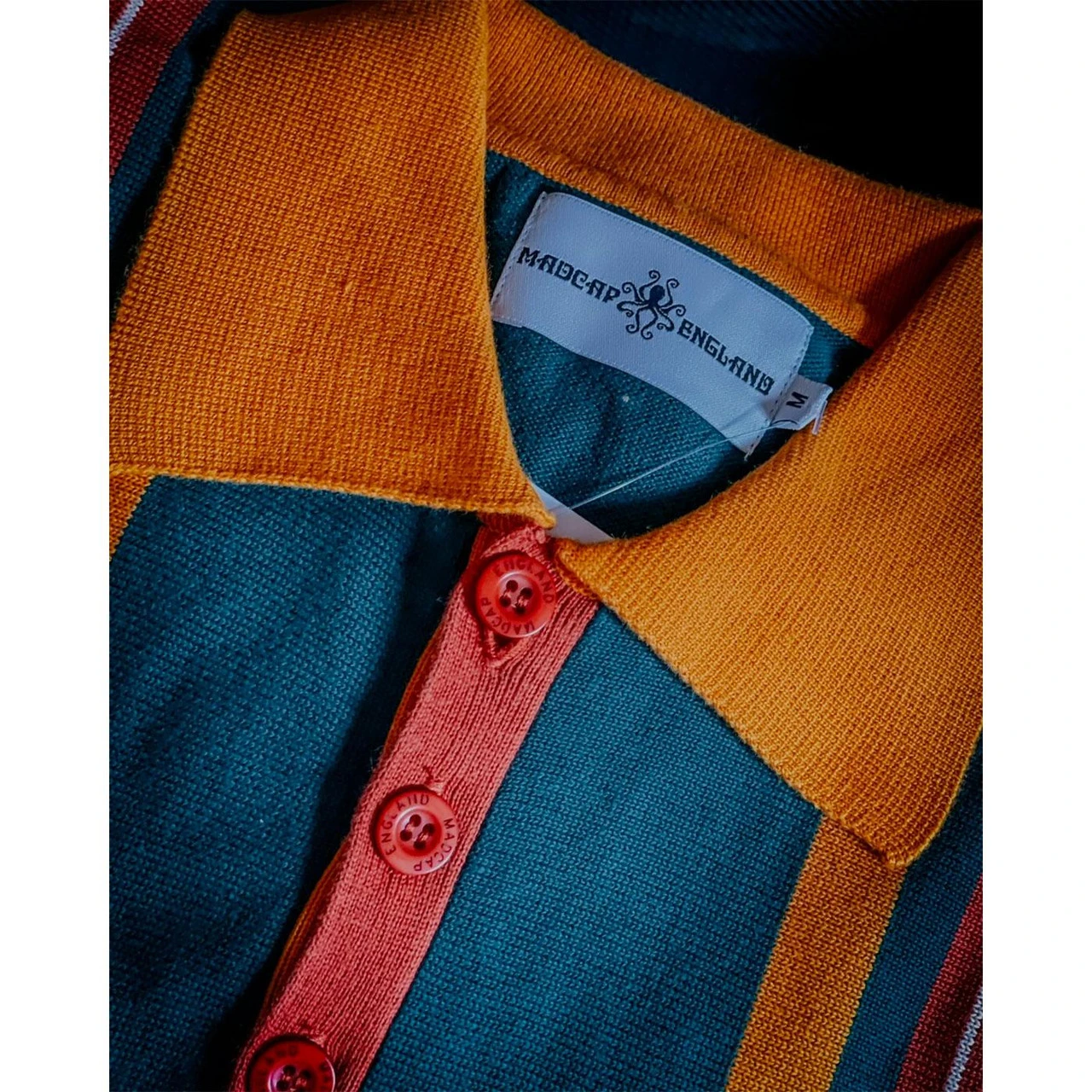 - Madcap England ‘Farlowe’ men’s 1960s mod stripe knitted polo shirt.