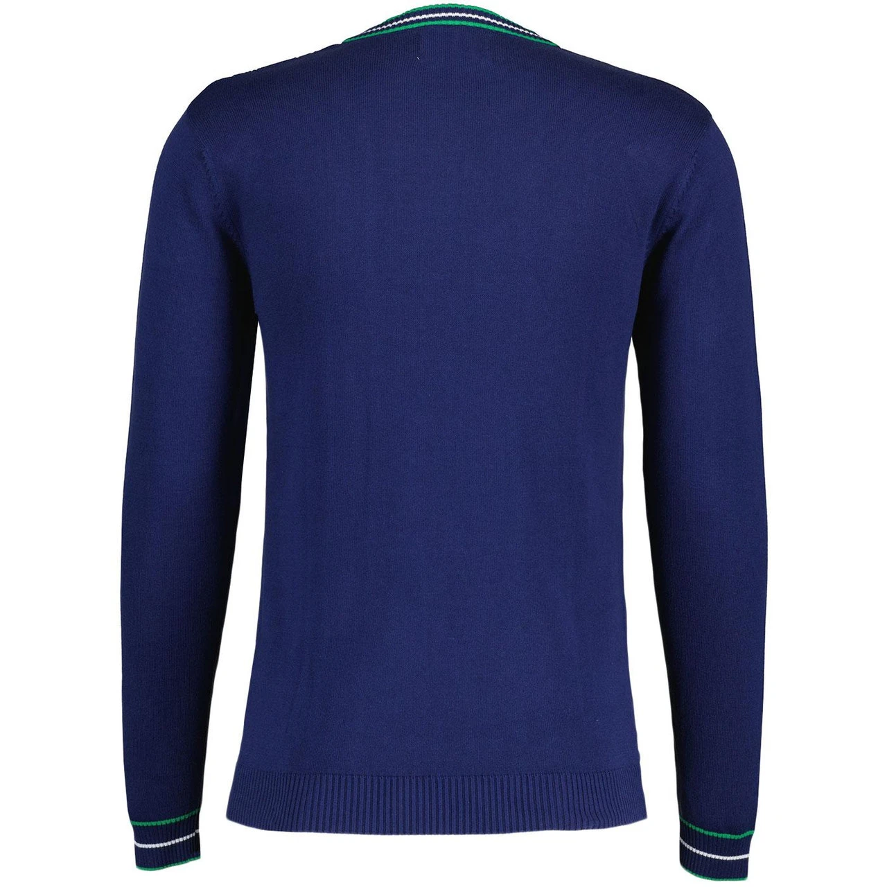 - White and green tipping to V-neck and cuffs.