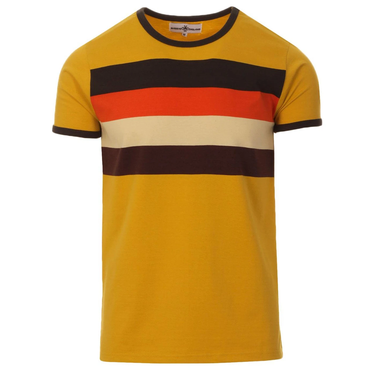 - Madcap England Hunter men’s retro 70s chest stripe tee.