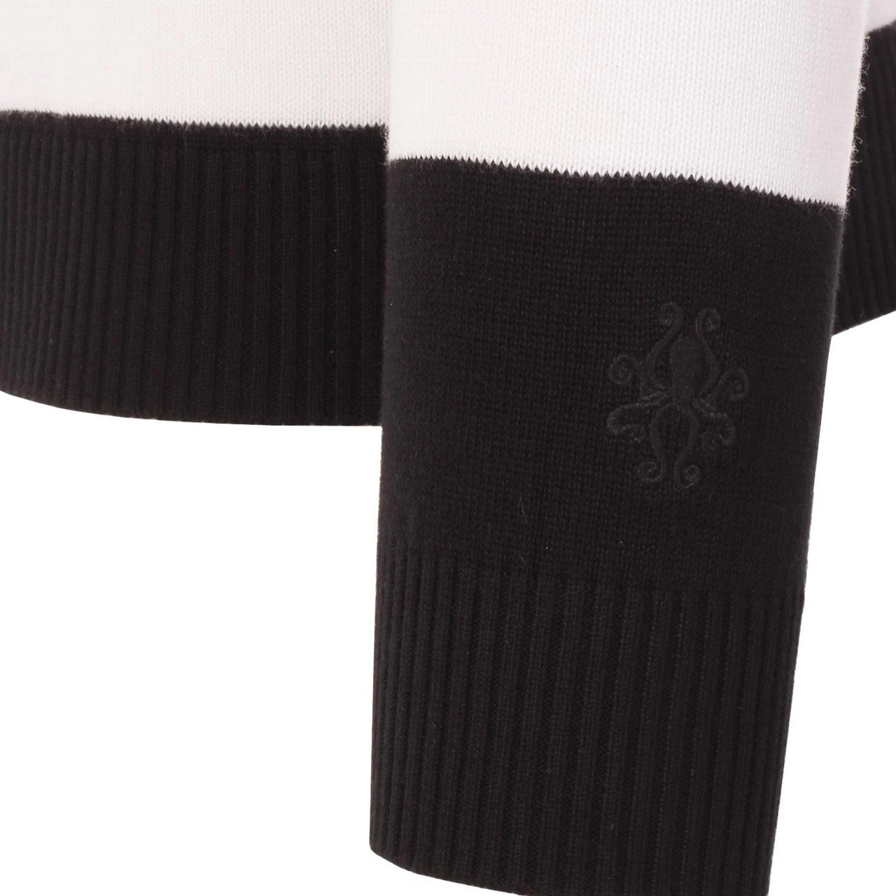 ‘JONES’ MENS RETRO SIXTIES MOD BLOCK STRIPE ATOM STRAIGHT NECK JUMPER by MADCAP ENGLAND – Mens black and white Retro block stripe knitted jumper. Sixties Mod style with cool Indie straight neck addition that is accompanied by cool button shoulder placket. A stand out style – ‘Jones’ Jumper by Madcap England.