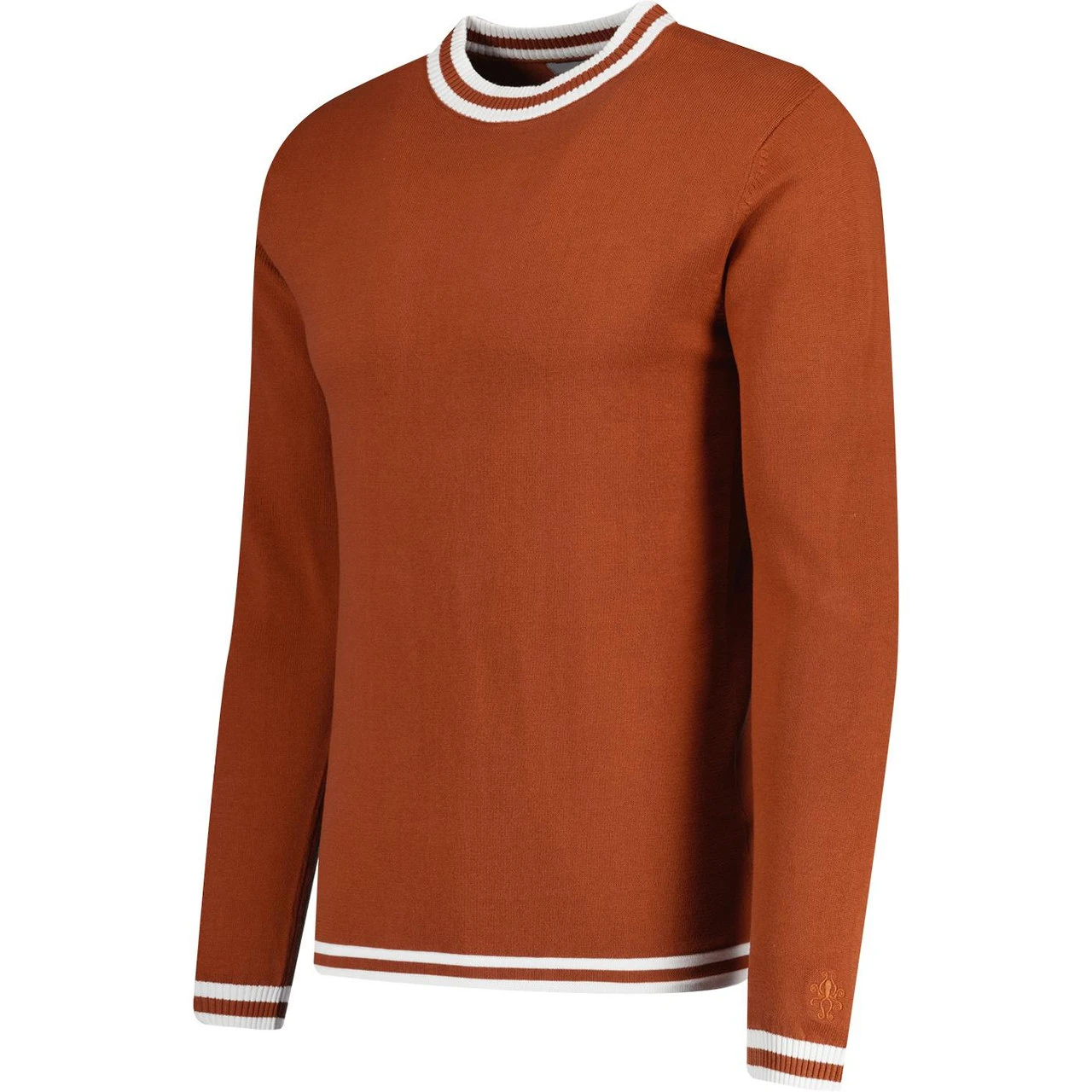 - Madcap England LS Moon men’s 60s mod knitted jumper in gingerbread.