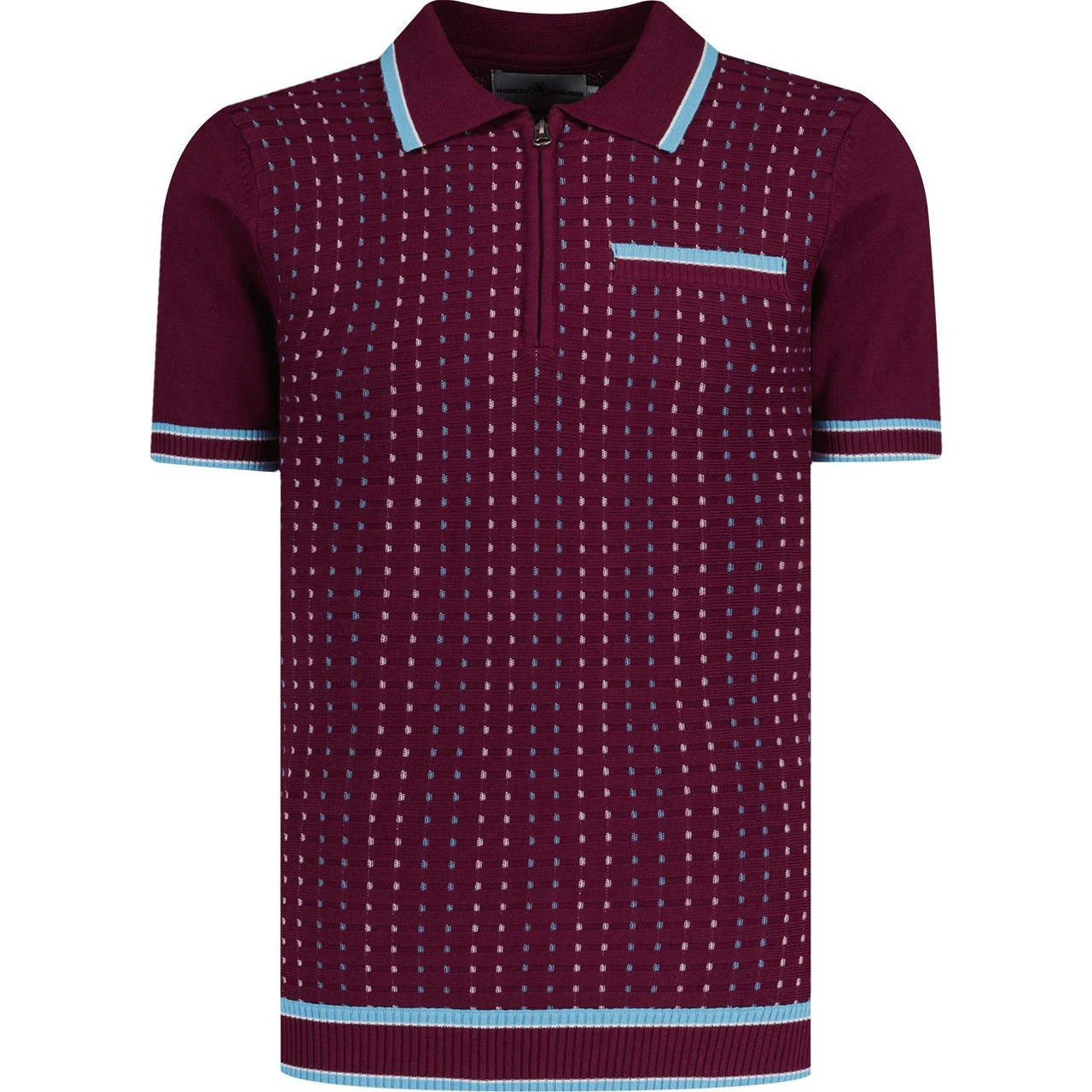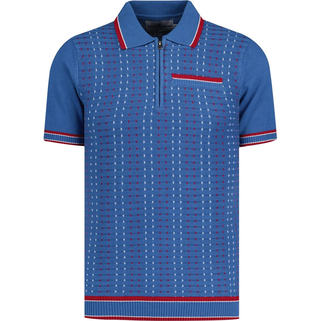 - Madcap England Miles Mod Jacquard Knitted Polo Shirt in federal blue.