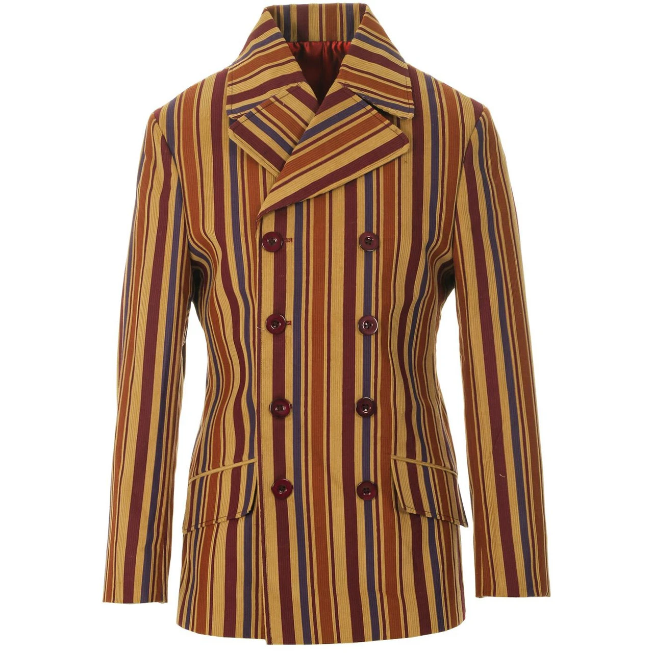 - Madcap England ‘Rare Breed Stripe’ men’s 60s mod cord double breasted blazer jacket in stone.