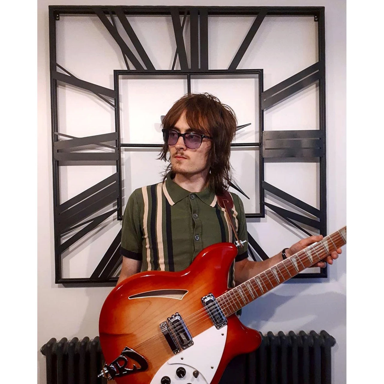 - Madcap England Shockwave retro stripe knit polo cardigan in Cypress Green.